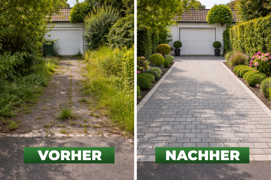 Jeder schätzt eine gepflegte Einfahrt. Doch oft fehlt die Zeit, sich Ihrer standesgemäß anzunehmen. Lassen Sie uns Ihr erstes Aushängeschild auf Vordermann bringen und Ihnen auf dem Heimweg das „Nach Hause kommen“ noch erfreulicher machen.